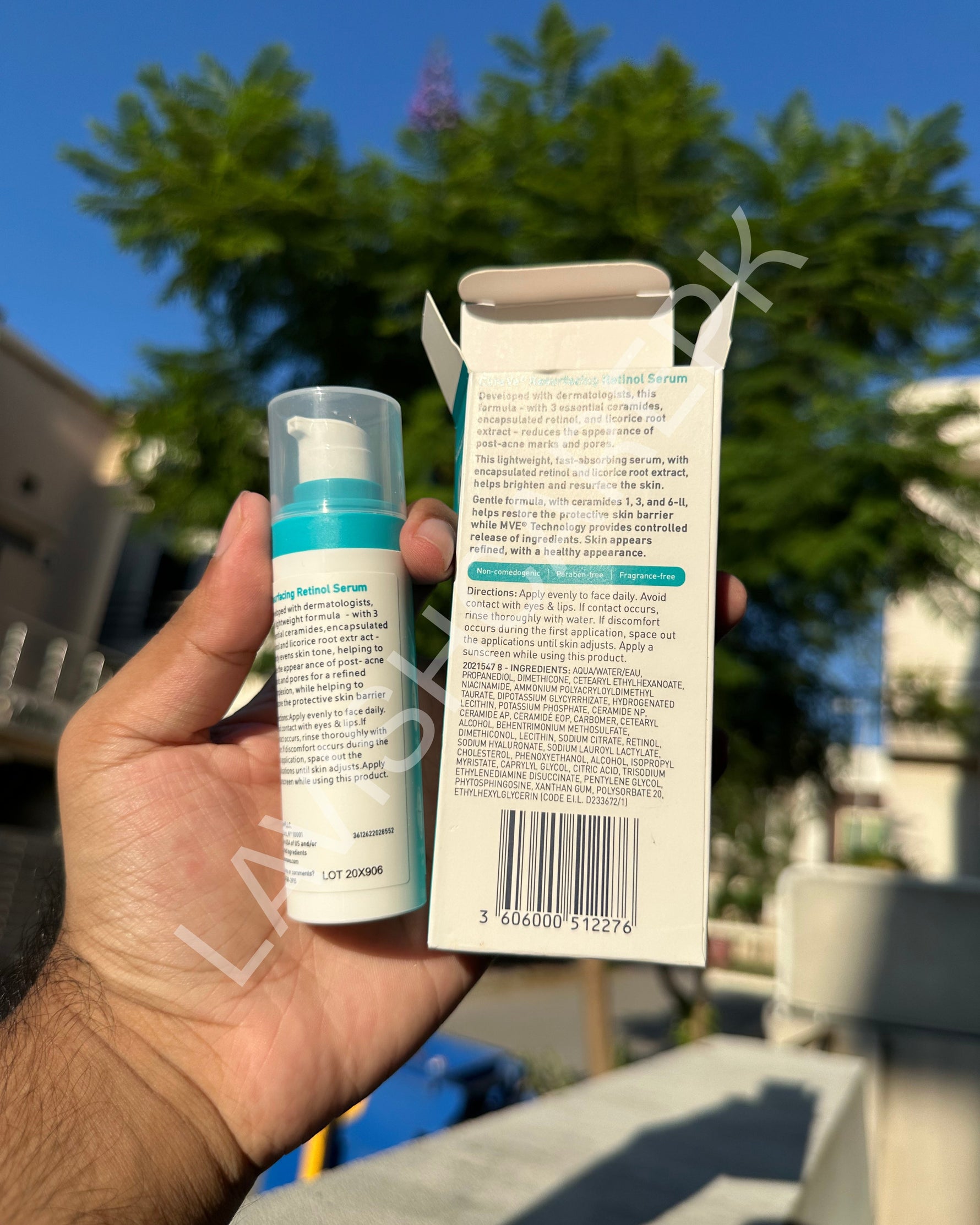 Achieve smoother, clearer skin with CeraVe Resurfacing Retinol Serum! ๐ŸŒŸ Designed for acne-prone skin, this powerful serum features encapsulated retinol, ceramides, licorice root extract, and niacinamide to reduce the appearance of post-acne marks and pores. It smooths your skin texture and evens out your complexion, giving you the confidence to glow every day.